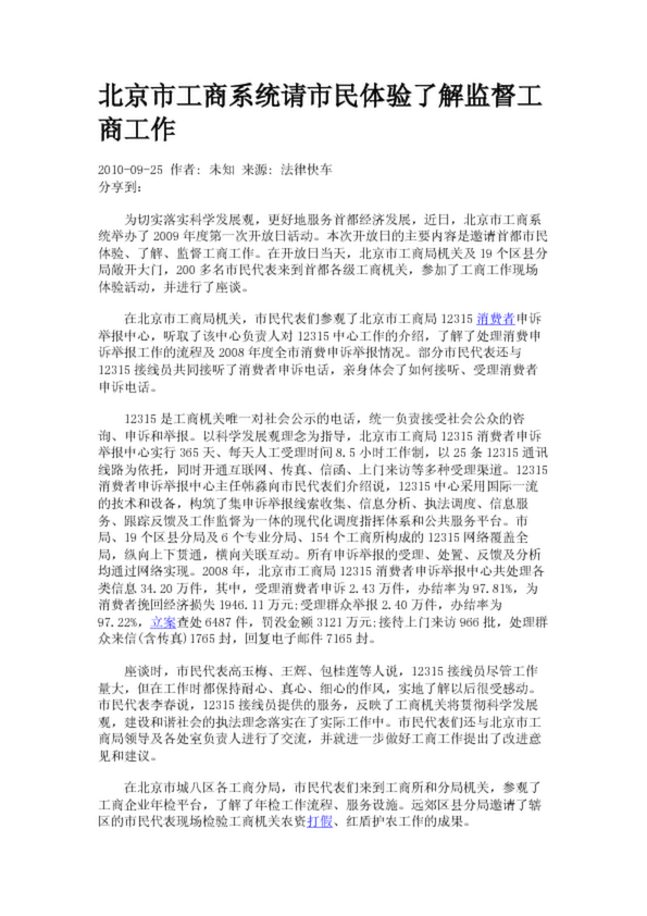 北京市工商系統(tǒng)請(qǐng)市民體驗(yàn)了解監(jiān)督工商工作