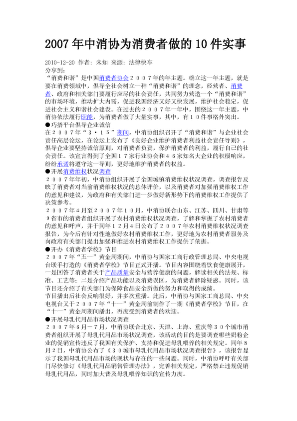 2007年中消協(xié)為消費者做的10件實事
