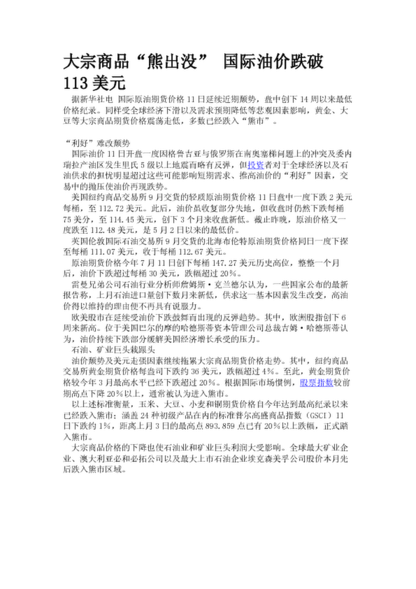 大宗商品“熊出沒” 國際油價跌破113美元(20.31KB)