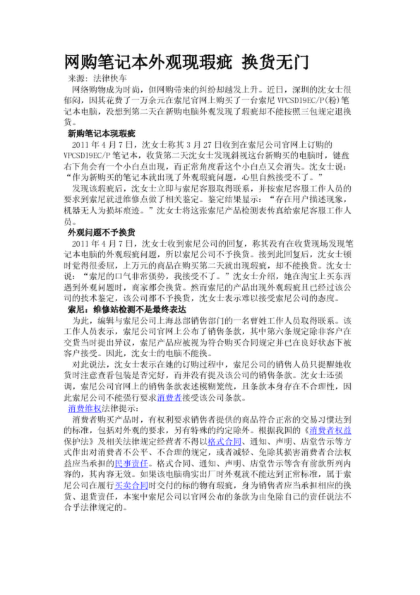 網購筆記本外觀現瑕疵 換貨無門(21.85KB)