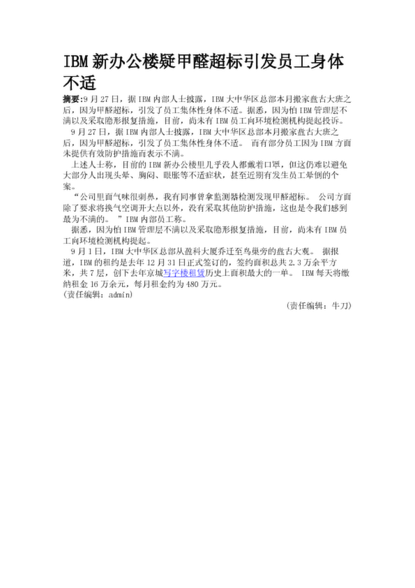 IBM新辦公樓疑甲醛超標引發員工身體不適(18.50KB)