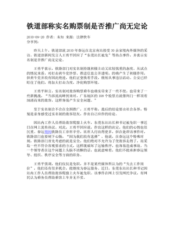 鐵道部稱實名購票制是否推廣尚無定論
