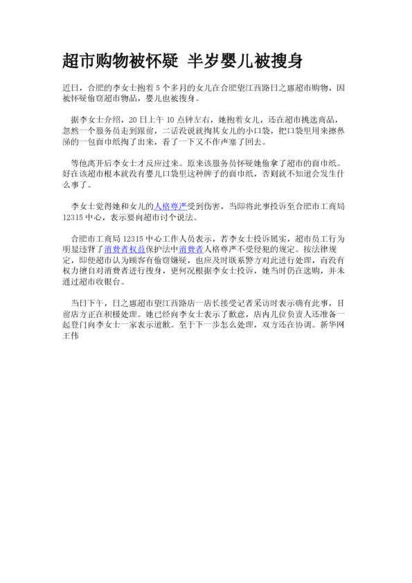 超市購物被懷疑 半歲嬰兒被搜身