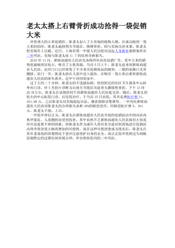 老太太搭上右臂骨折成功搶得一袋促銷大米(18.06KB)