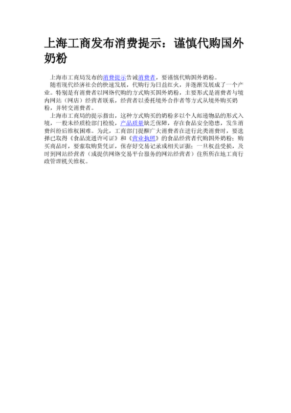 上海工商發布消費提示:謹慎代購國外奶粉