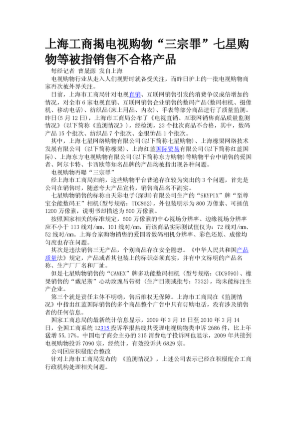 上海工商揭電視購物“三宗罪”七星購物等被指銷售不合格產品