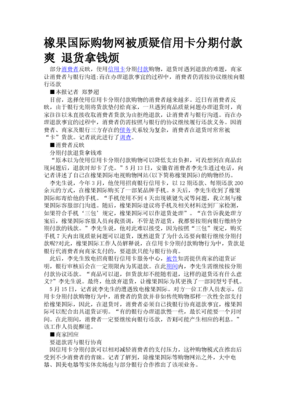 橡果國際購物網被質疑信用卡分期付款爽 退貨拿錢煩(30.66KB)