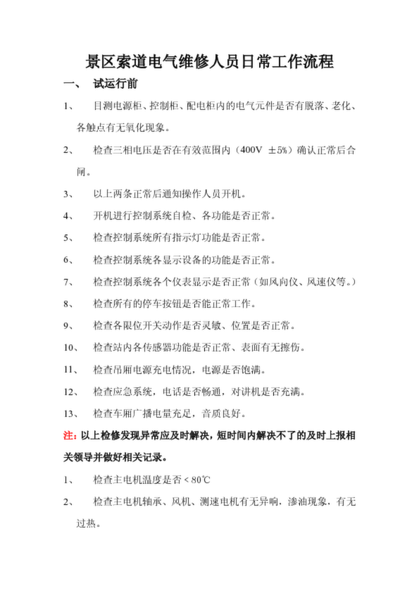 西陵峽口風景區索道電氣維修人員日常工作流程