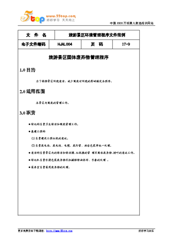 旅游景區環境管理程序文件范例_固體廢棄物