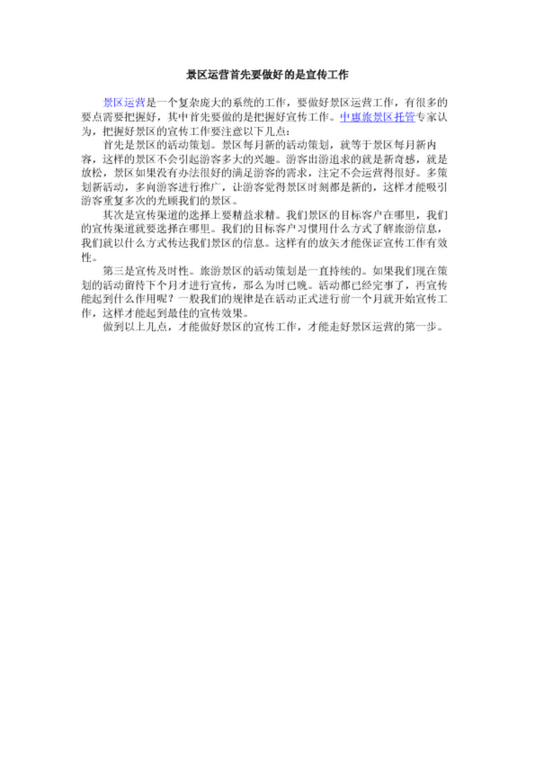 景區(qū)運(yùn)營(yíng)首先要做好的是宣傳工作