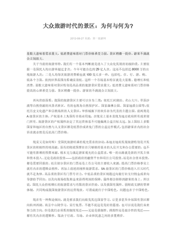 大眾旅游時代的景區:為何與何為