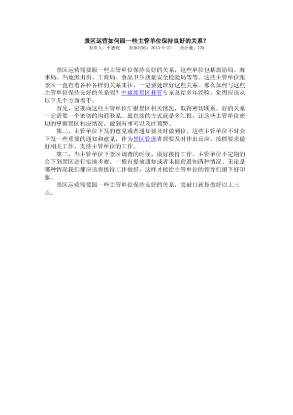 景區運營如何跟一些主管單位保持良好的關系?(2.19KB)