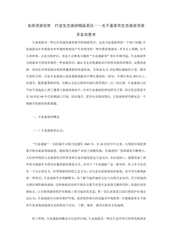 發(fā)揮資源優(yōu)勢(shì) 打造生態(tài)旅游精品景區(qū)——關(guān)于蓬萊市生態(tài)旅游資源開(kāi)發(fā)的思考(44.00KB)