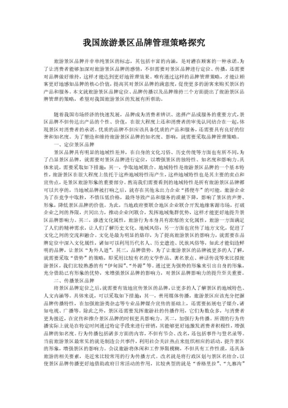 我國旅游景區(qū)品牌管理策略探究