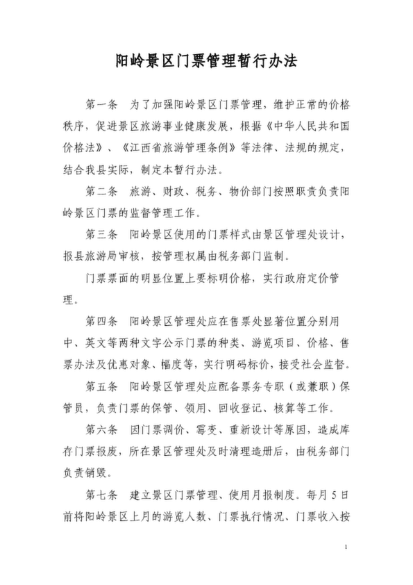 陽嶺景區(qū)門票管理暫行辦法