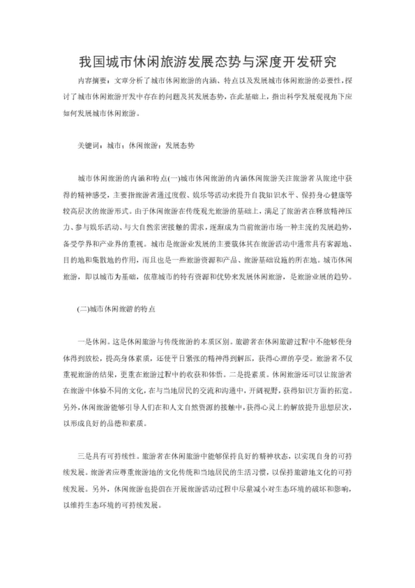 我國城市休閑旅游發(fā)展態(tài)勢與深度開發(fā)研究