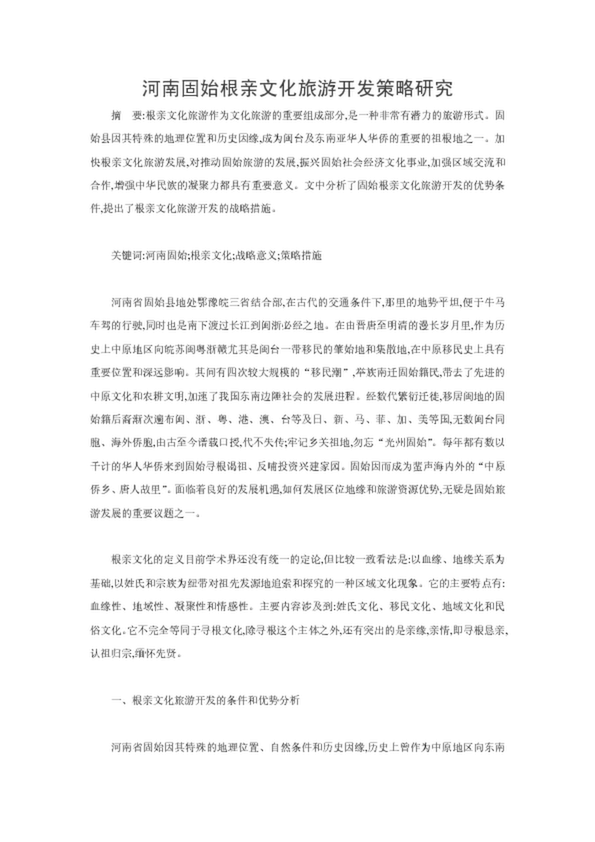河南固始根親文化旅游開發策略研究(21.50KB)
