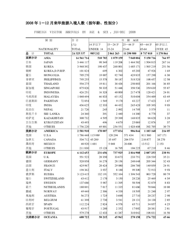 2008年1-12月來華旅游入境人數(shù)(按年齡、性別分)(0.14MB)