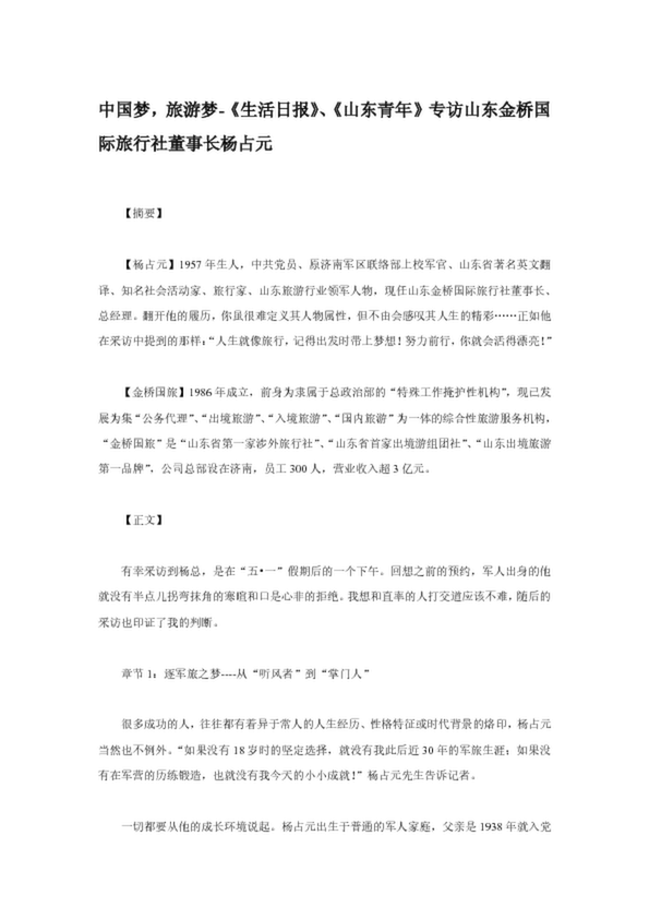 中國(guó)夢(mèng),旅游夢(mèng)-《生活日?qǐng)?bào)》、《山東青年》專訪山東金橋國(guó)際旅行社董事長(zhǎng)楊占元(22.50KB)