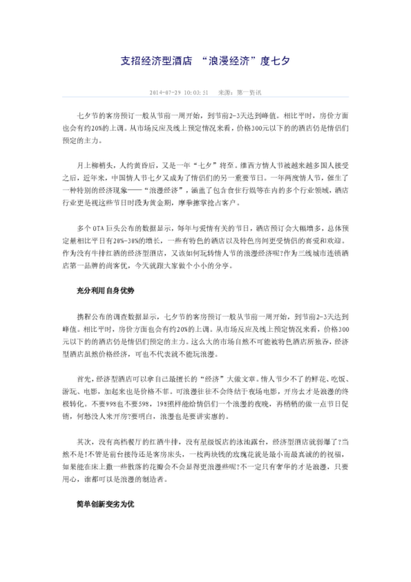 2014年5月中國酒店業經濟型品牌發展報告