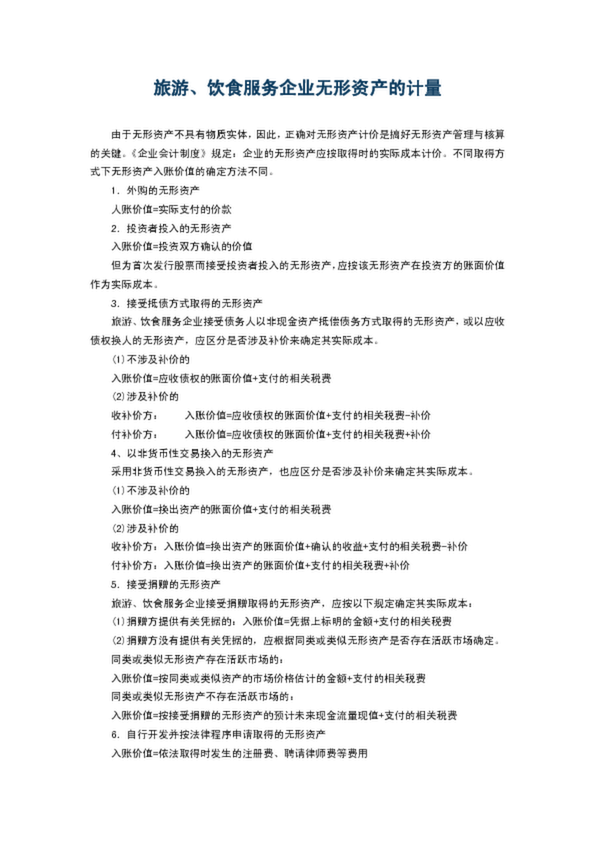 旅游、飲食服務企業無形資產的計量