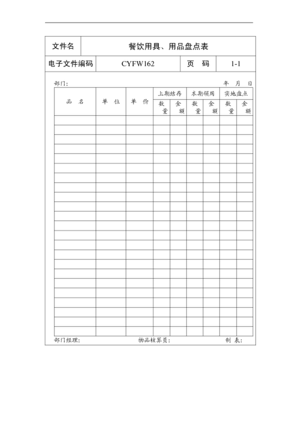 餐飲用具、用品盤點表