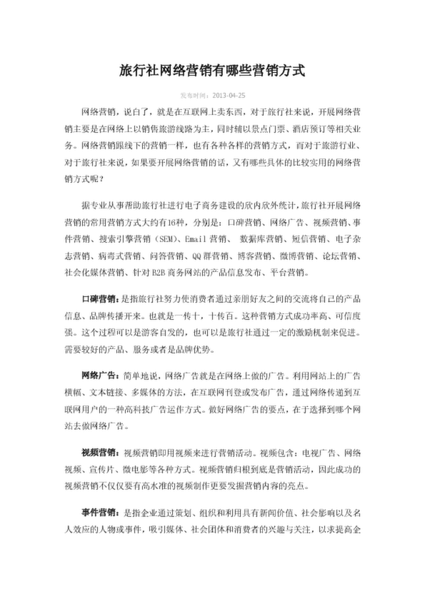 旅行社營銷100招