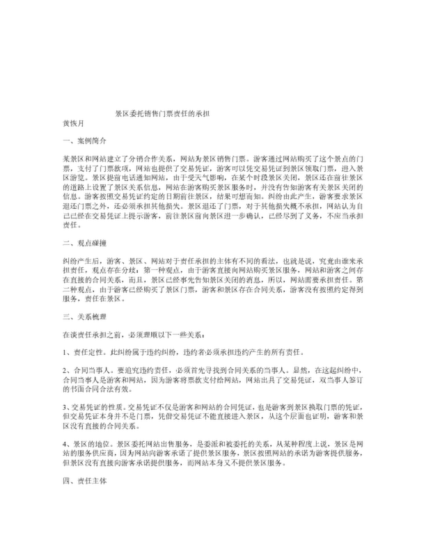 景區委托銷售門票責任的承擔(3.37KB)