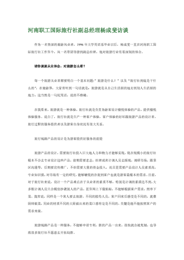 河南職工國際旅行社副總經理楊成斐訪談(14.00KB)