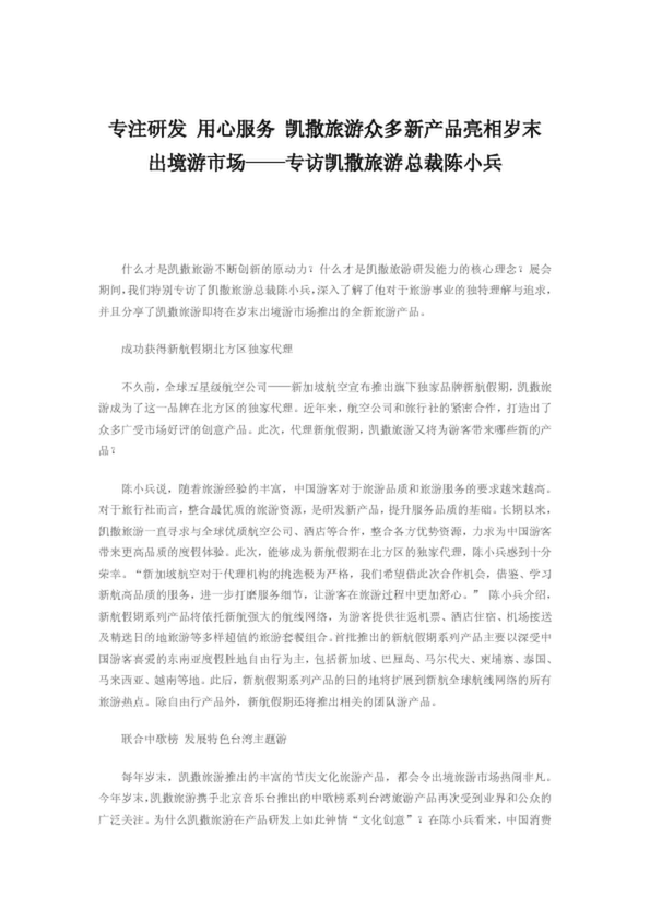 專注研發(fā) 用心服務(wù) 凱撒旅游眾多新產(chǎn)品亮相歲末出境游市場——專訪凱撒旅游總裁陳小兵