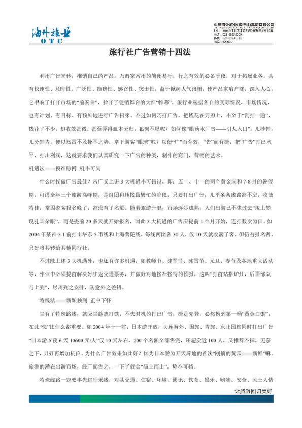 旅行社廣告營銷十四法