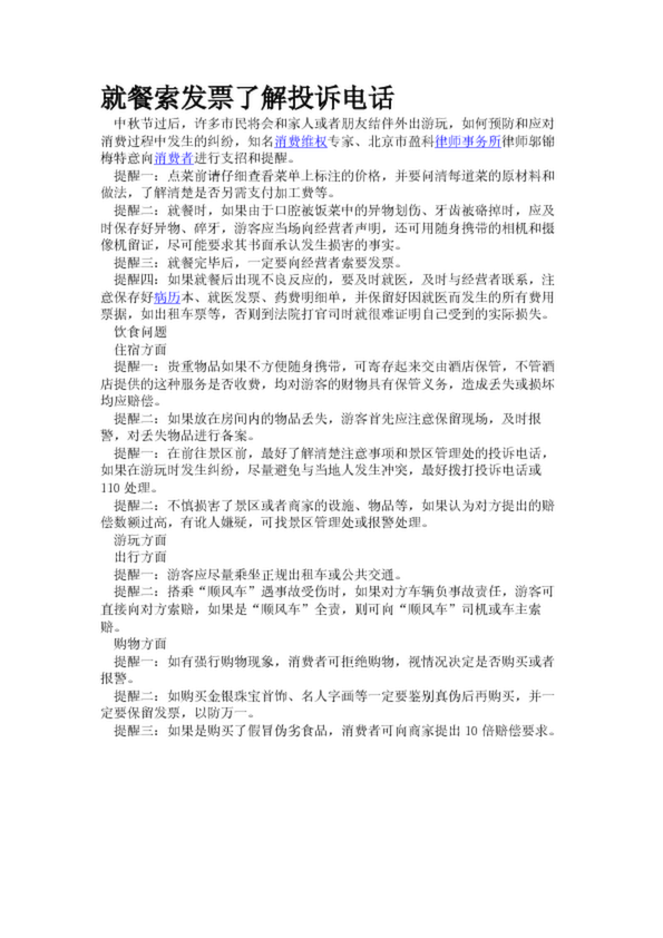 就餐索發票了解投訴電話