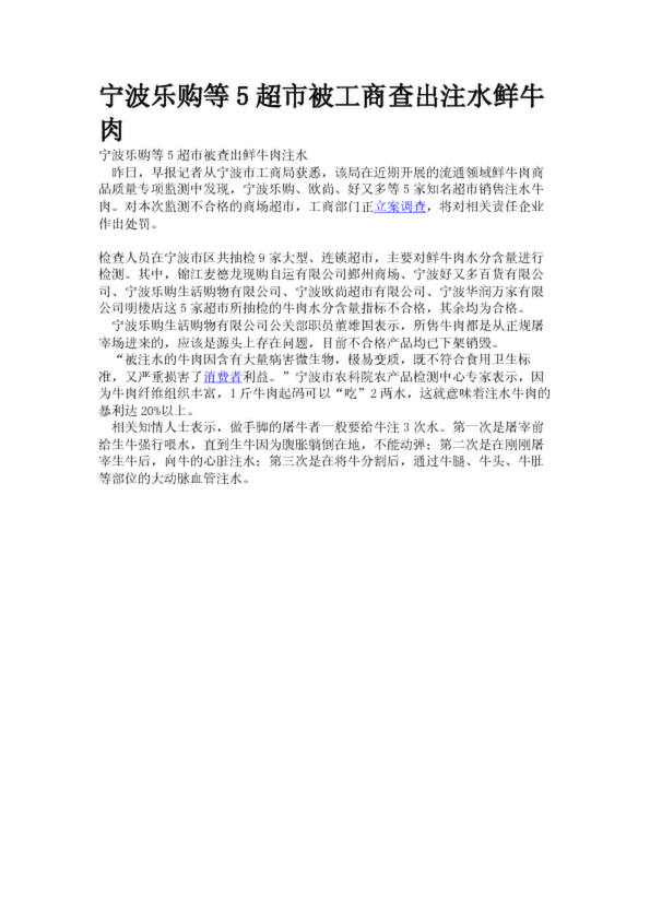 寧波樂購等5超市被工商查出注水鮮牛肉(18.20KB)